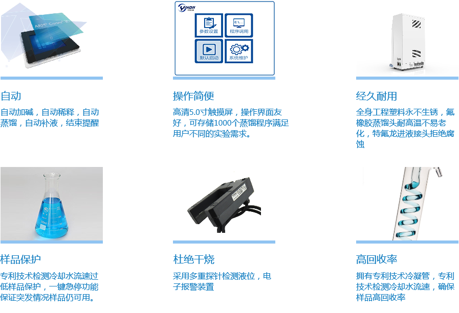 自動化程度 參數設定后,儀器自動完成樣品稀釋、加堿、蒸餾、吸收及管路淋洗